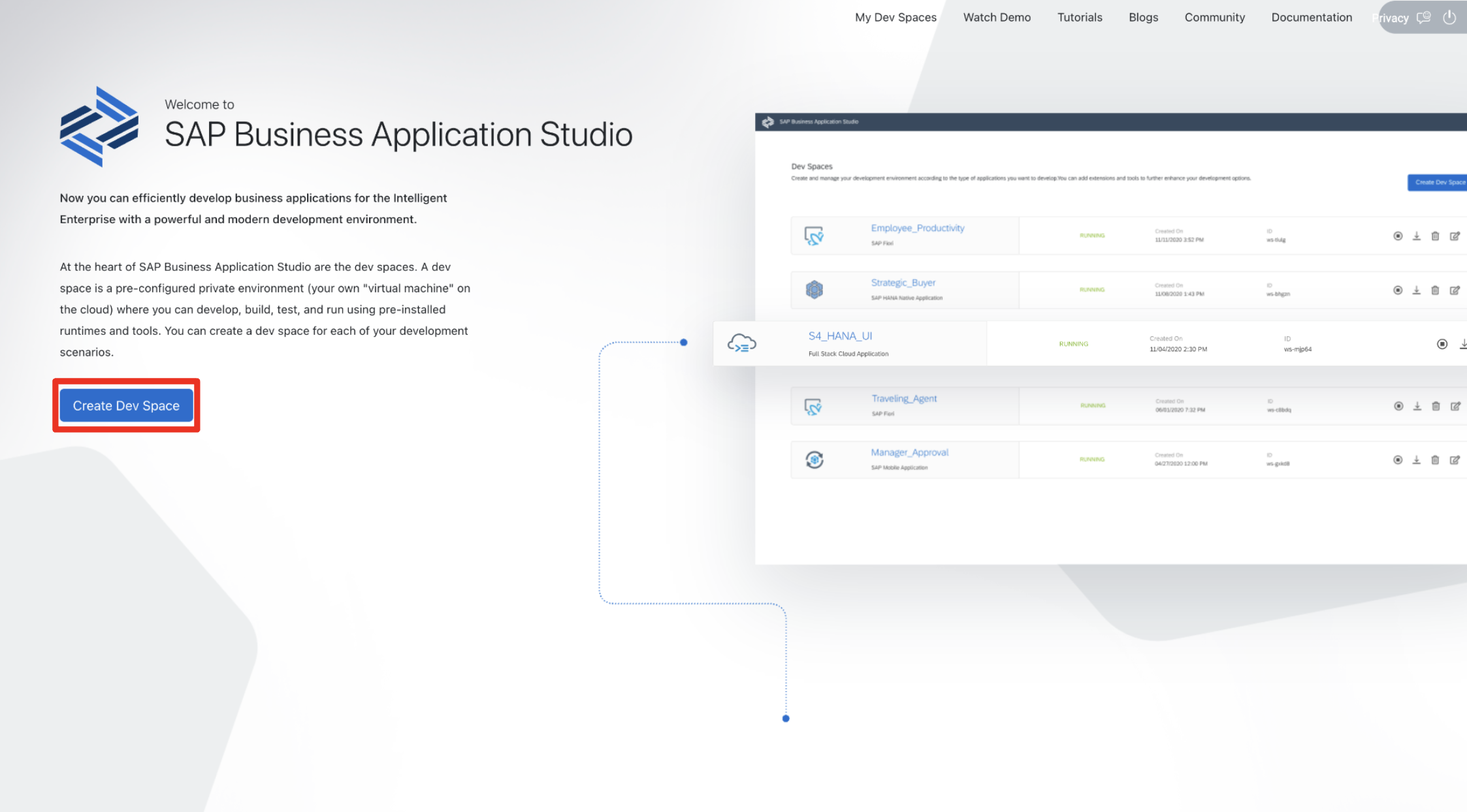첫 시작이니 첫 Space를 만들라고 합니다 그럼 Create Dev Space를 클릭하고
