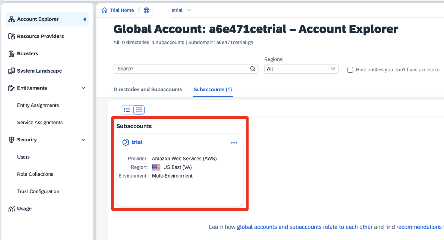 Continue to Trial Home 을 눌러서 서브 어카운트를 생성해 봅시다.