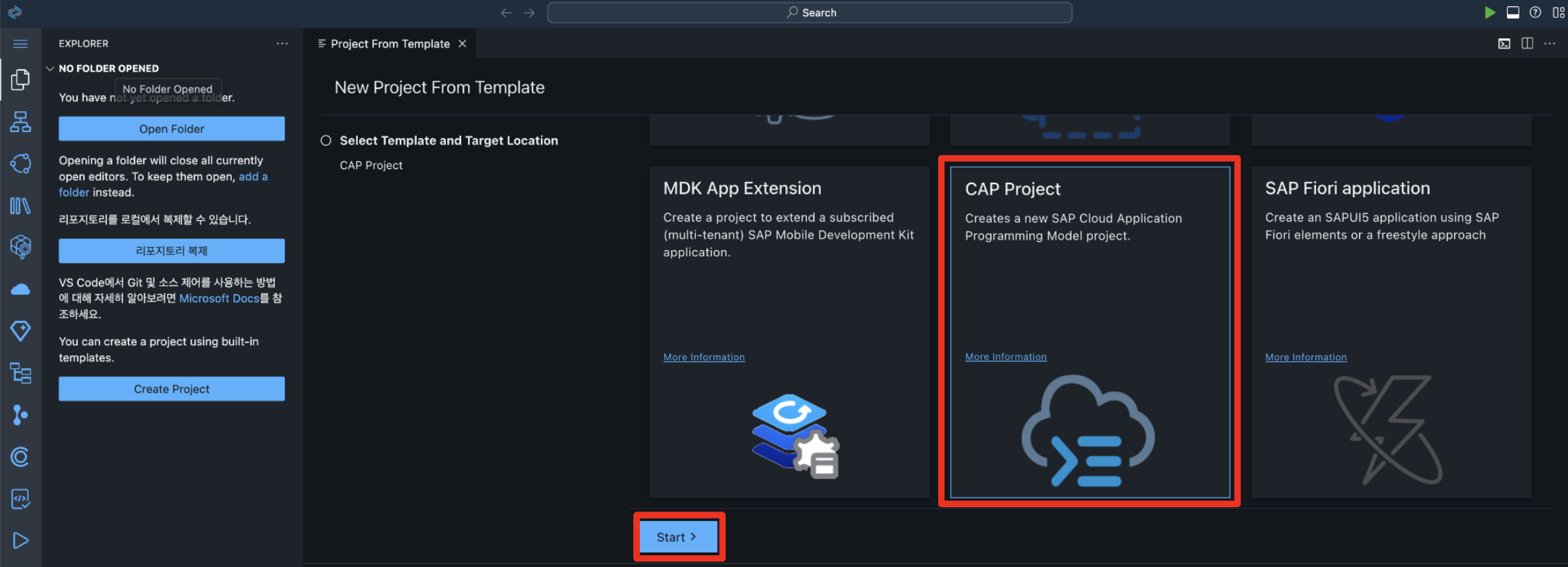 CAP Project를 클릭하고 Start를 클릭합니다.